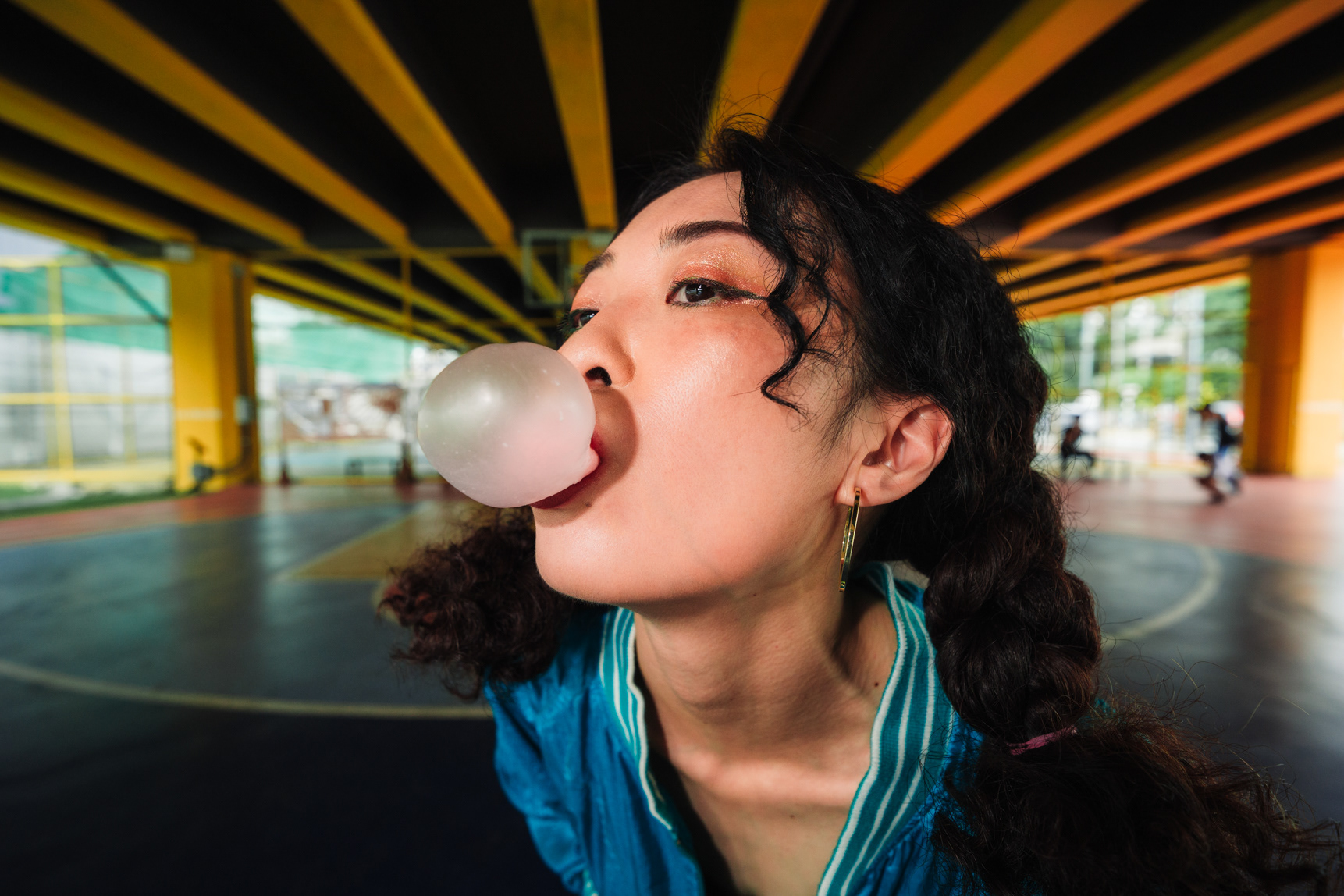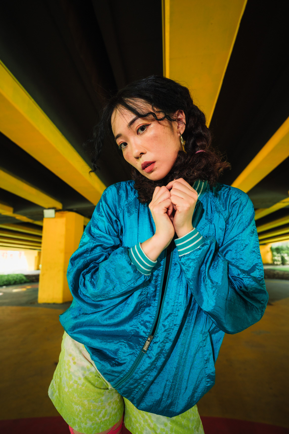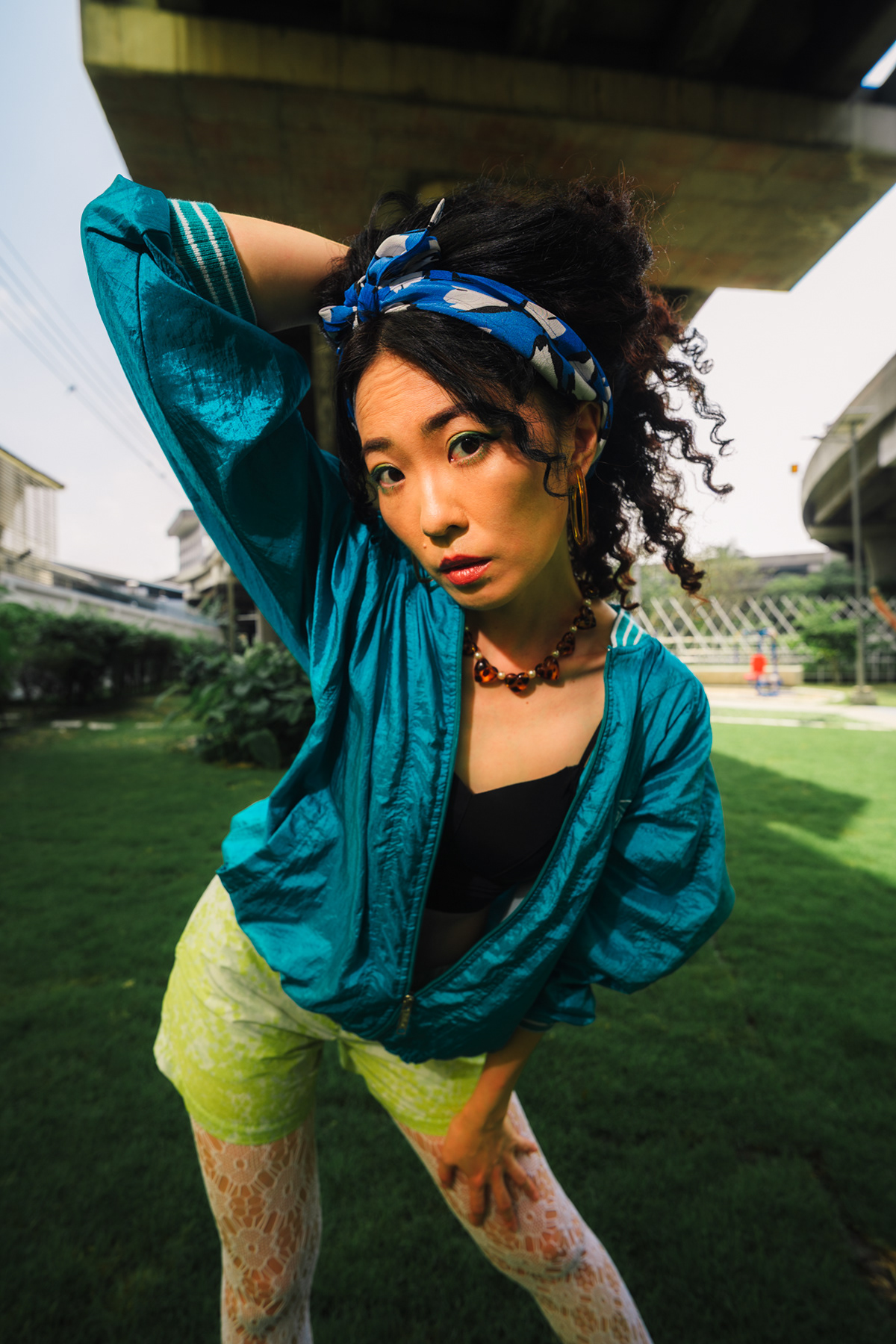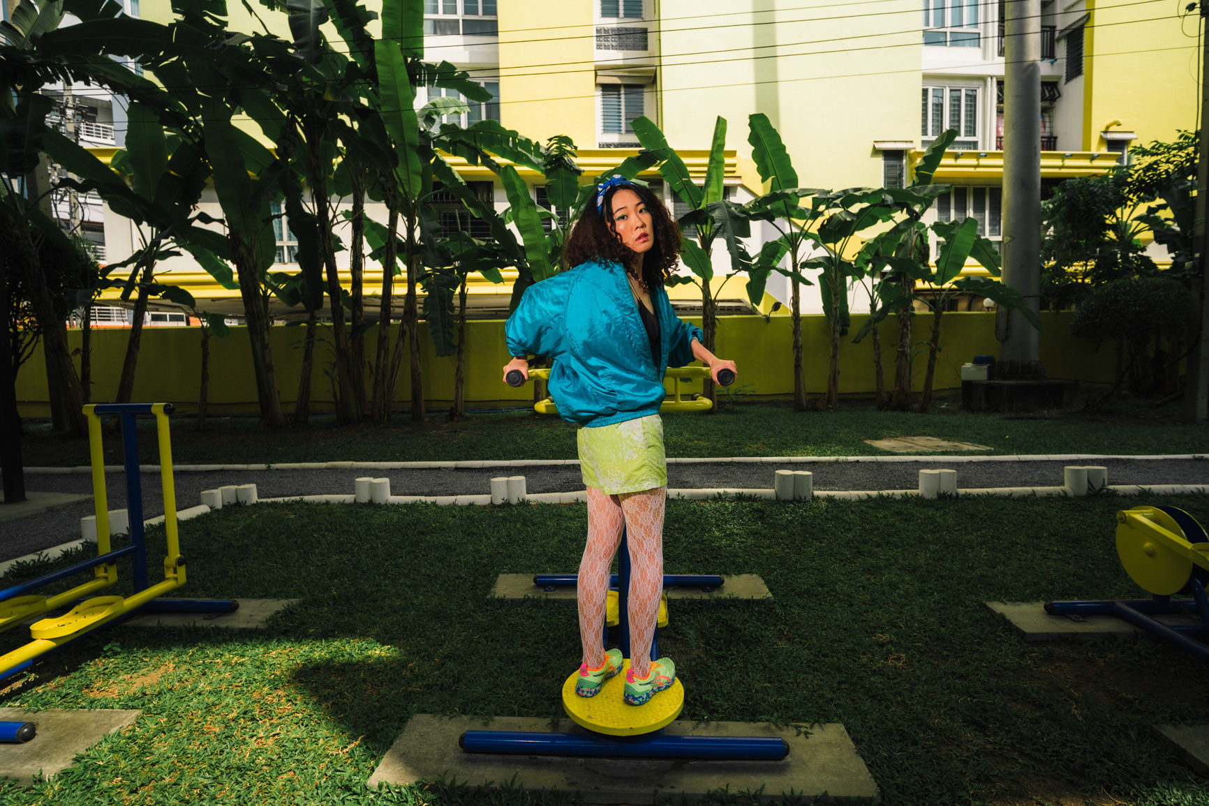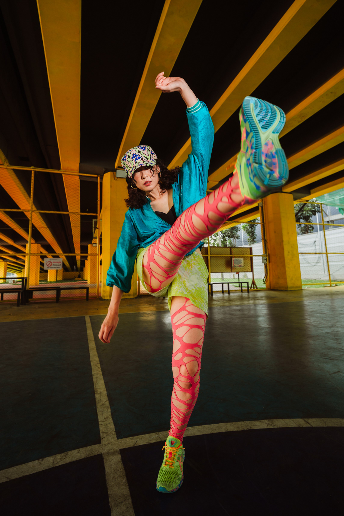 Neon Playground: Sporty Lifestyle & Color Block Photography This series showcases the work of a Bangkok photographer capturing the playful, energetic side of youth culture. Set in a vibrant urban playground, the shoot focuses on active lifestyle and bold color theory. The imagery utilizes the location’s striking architecture—yellow beams and red spiral staircases—to frame the subject’s teal and neon-green streetwear. Featuring candid moments like blowing bubblegum and dynamic actions on the playground equipment, this portfolio demonstrates a fun, high-energy approach to commercial lifestyle photography that appeals to modern Gen Z aesthetics.