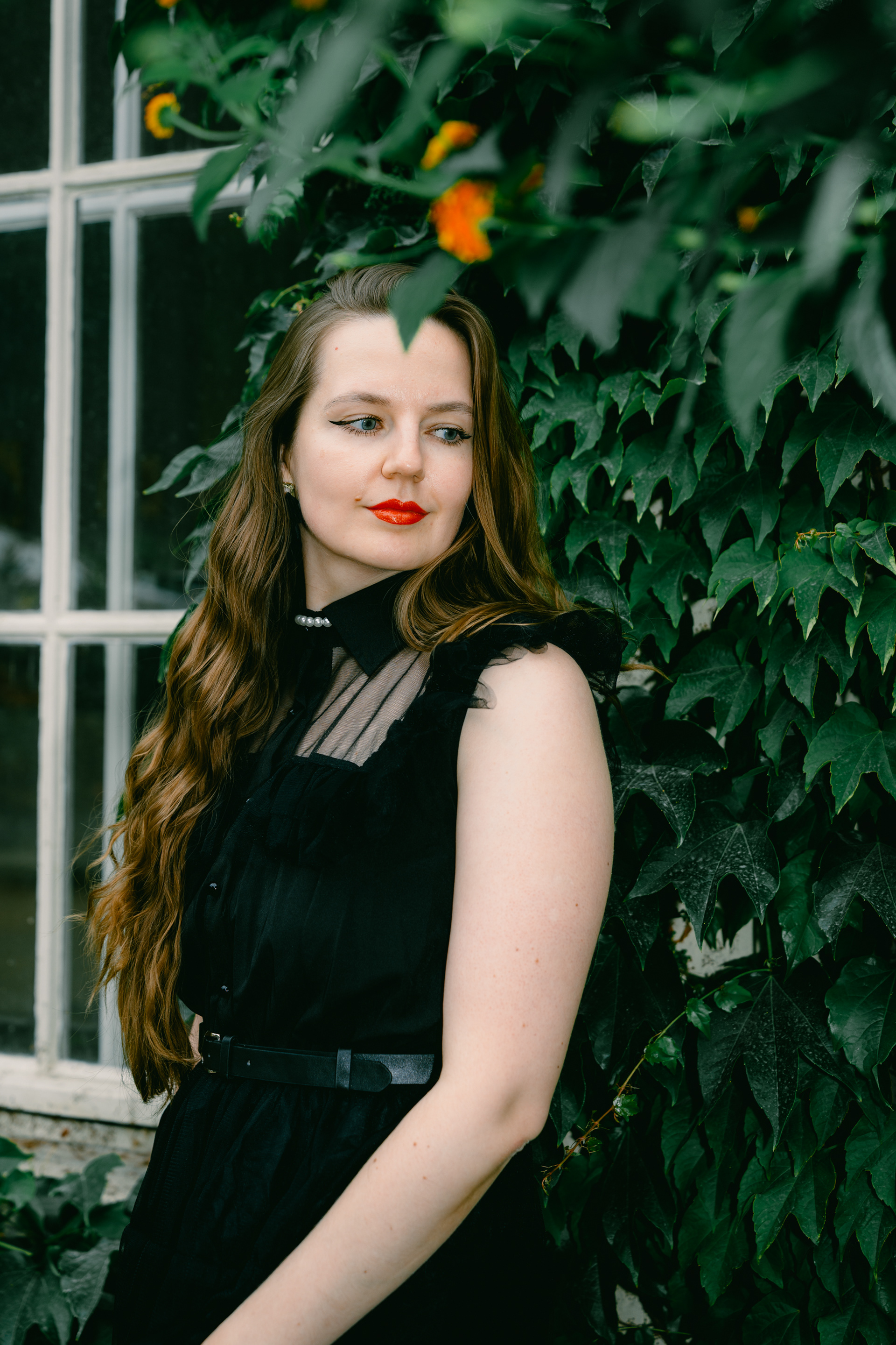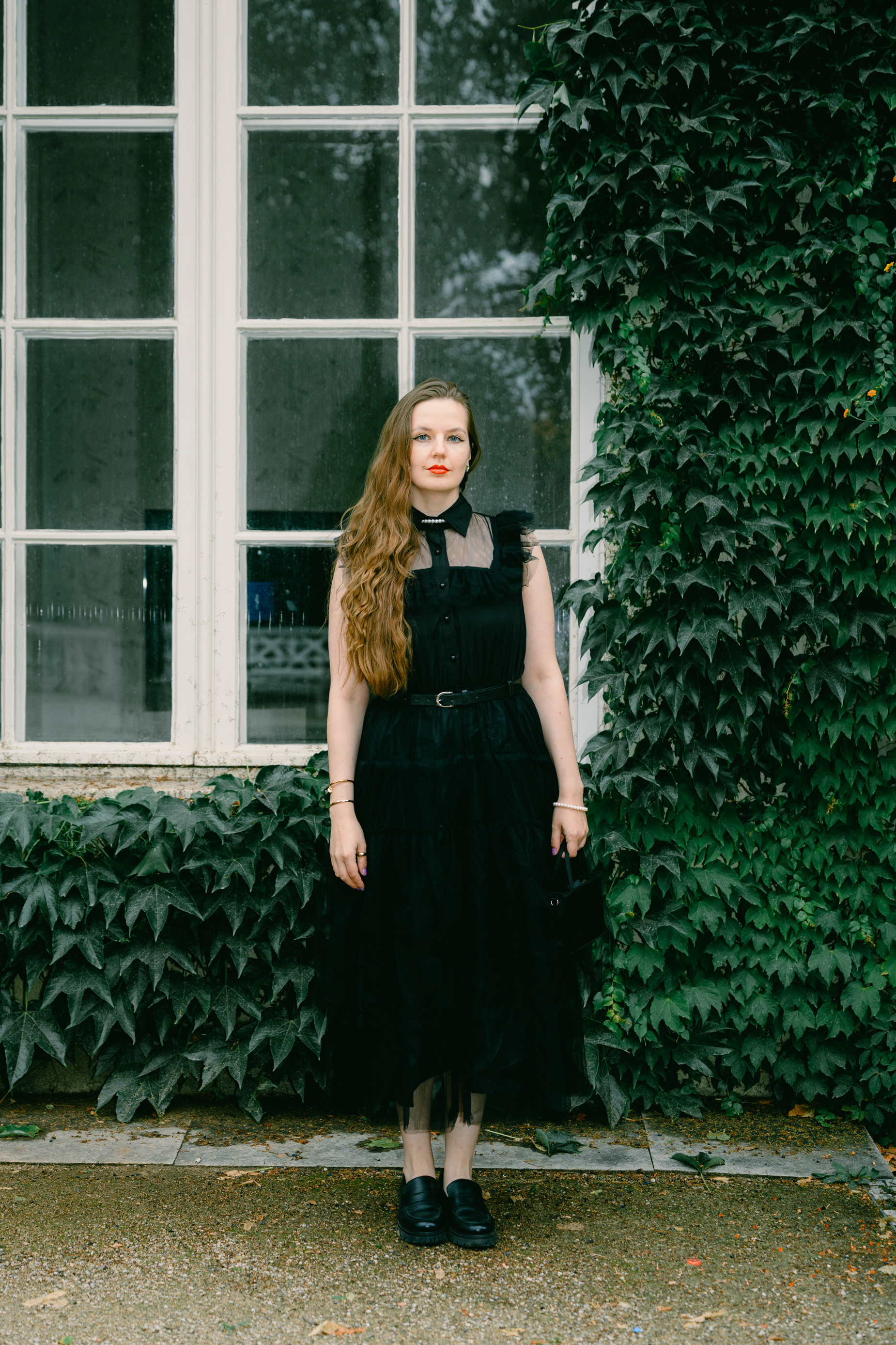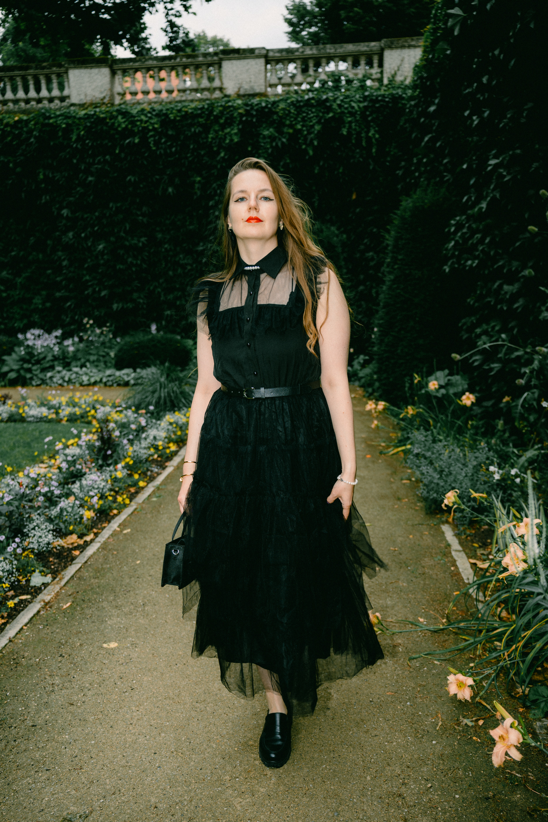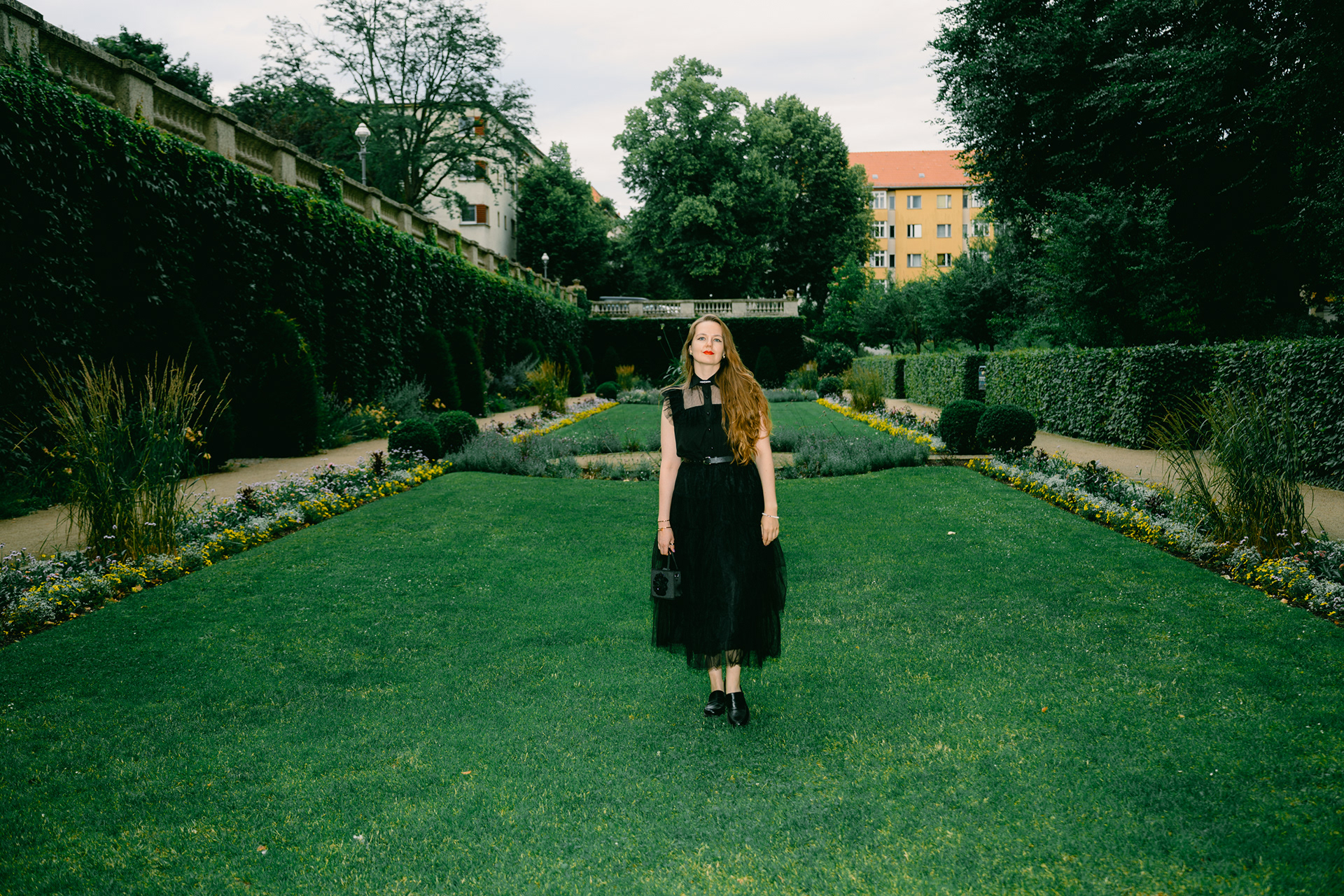 Gothic Romance: Elegant Portraits in a Historic Berlin Garden Stepping away from the grit of the city streets, this series explores a moodier, more romantic side of Berlin. Shot in a historic Neo-Baroque garden (reminiscent of locations like Körnerpark or palace grounds), the imagery focuses on timeless elegance and natural beauty. The session features a modern gothic aesthetic, contrasting a flowing black lace dress against the structured lines of manicured hedges and ivy-clad architecture. Utilizing soft natural light and the texture of ancient stone balustrades, this portfolio demonstrates a sophisticated approach to environmental portraiture, perfect for editorial fashion or clients seeking a cinematic, storybook atmosphere.