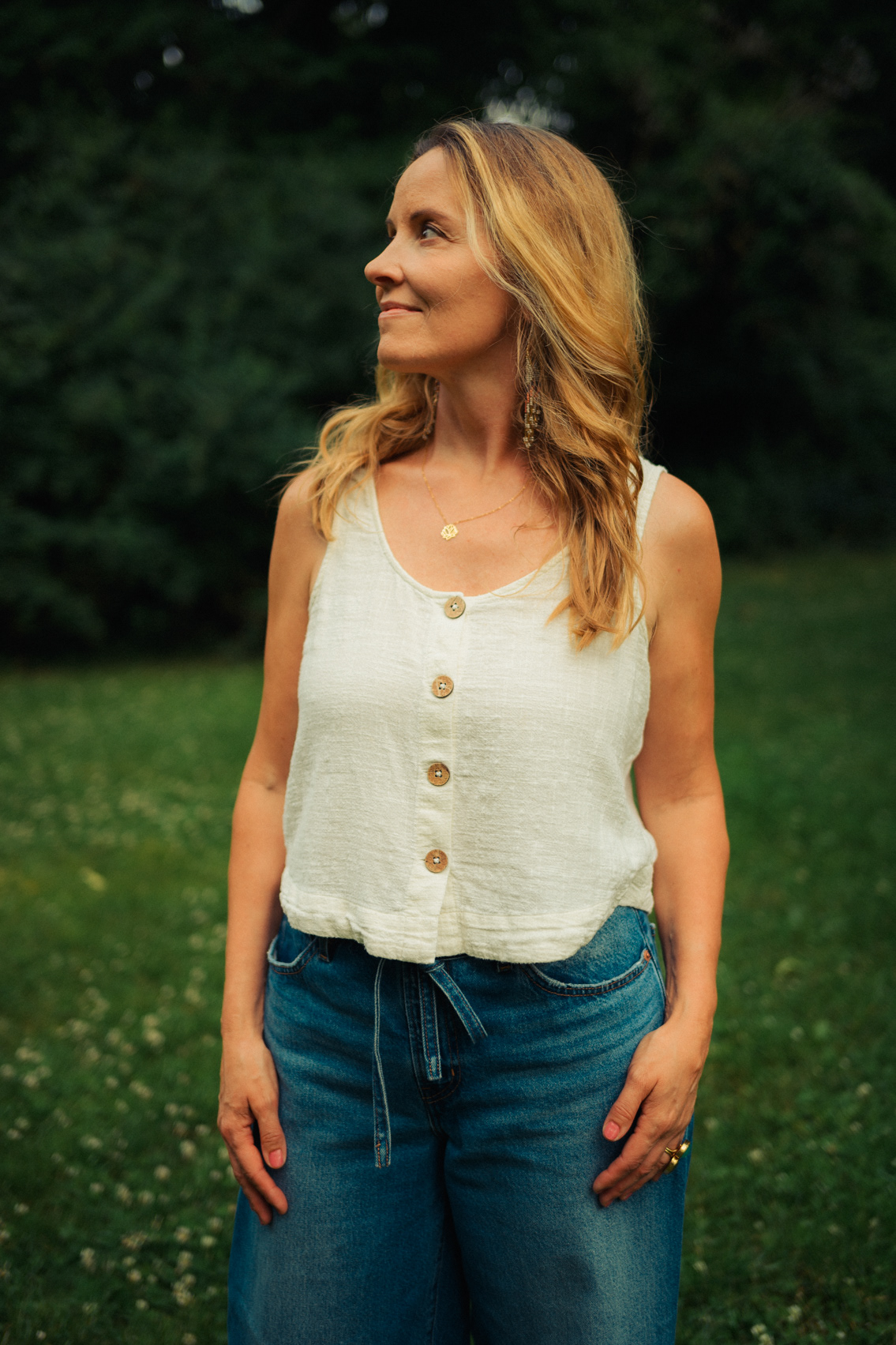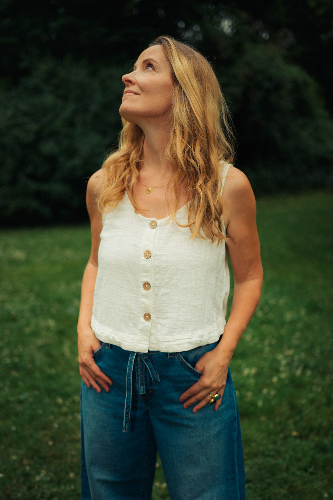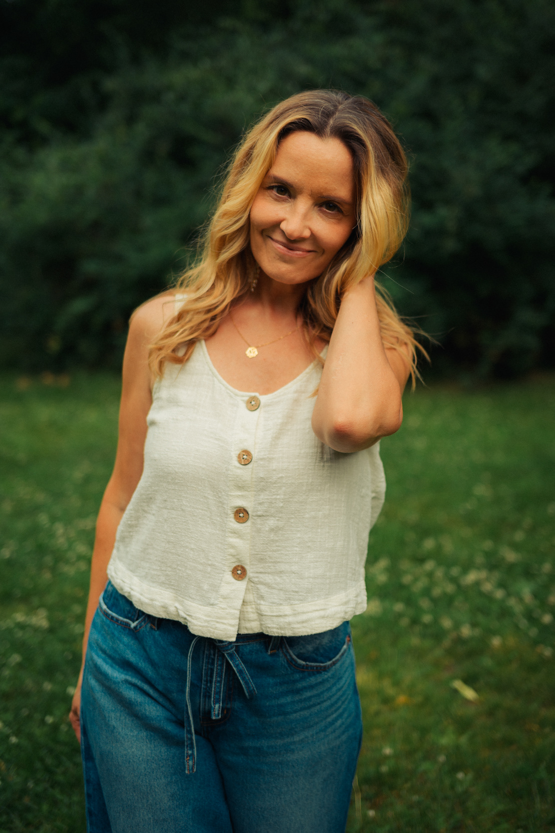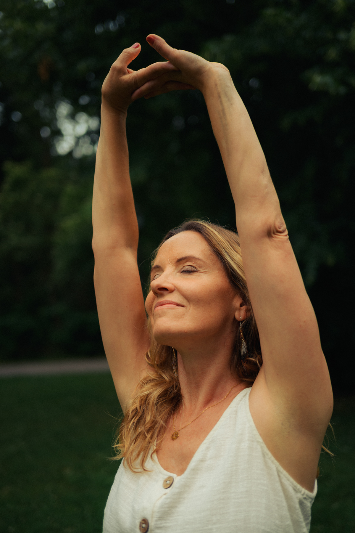 Simply Authentic: Natural Light Lifestyle Portraits in Berlin Stepping away from the studio and neon lights, this series celebrates the beauty of natural light portraiture in Berlin’s parks and green spaces. The focus here is on authenticity, joy, and relaxed storytelling. Shot in a lush Berlin park, these images capture the subject in her element—candid, smiling, and unposed. Utilizing available daylight and a shallow depth of field, the background melts into a soft green bokeh, keeping the attention entirely on the person. This style of lifestyle photography is perfect for personal branding, social media profiles, and anyone looking for honest, approachable portraits that feel like them.