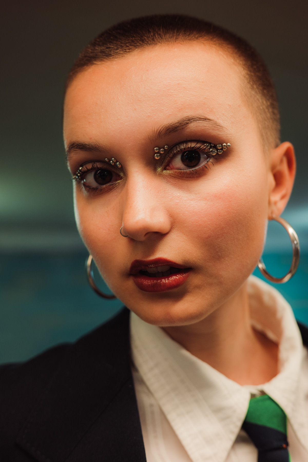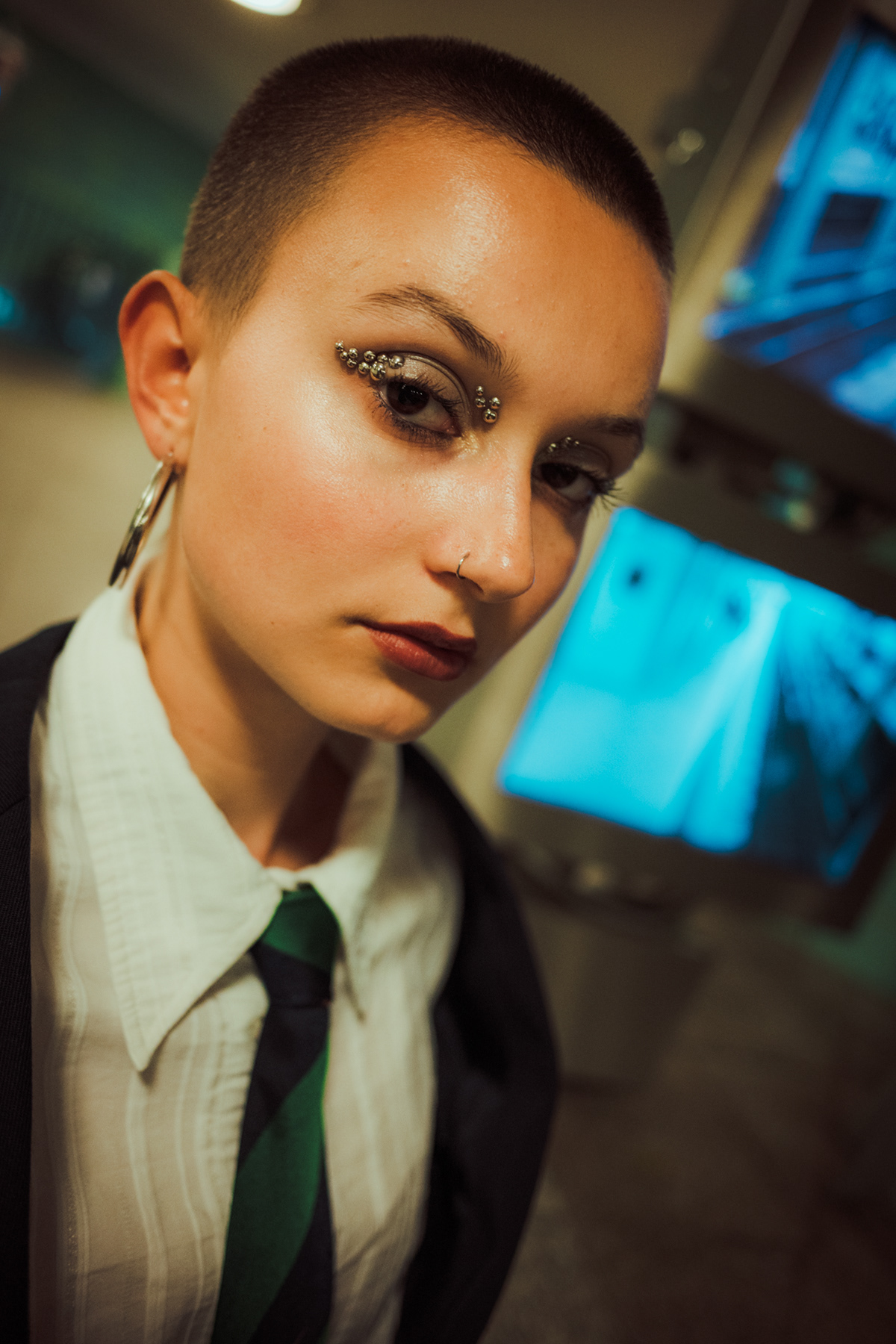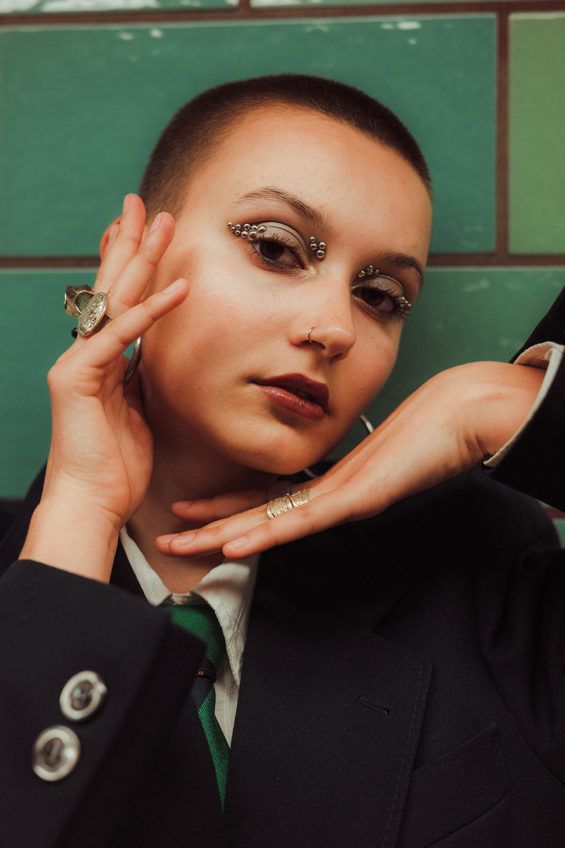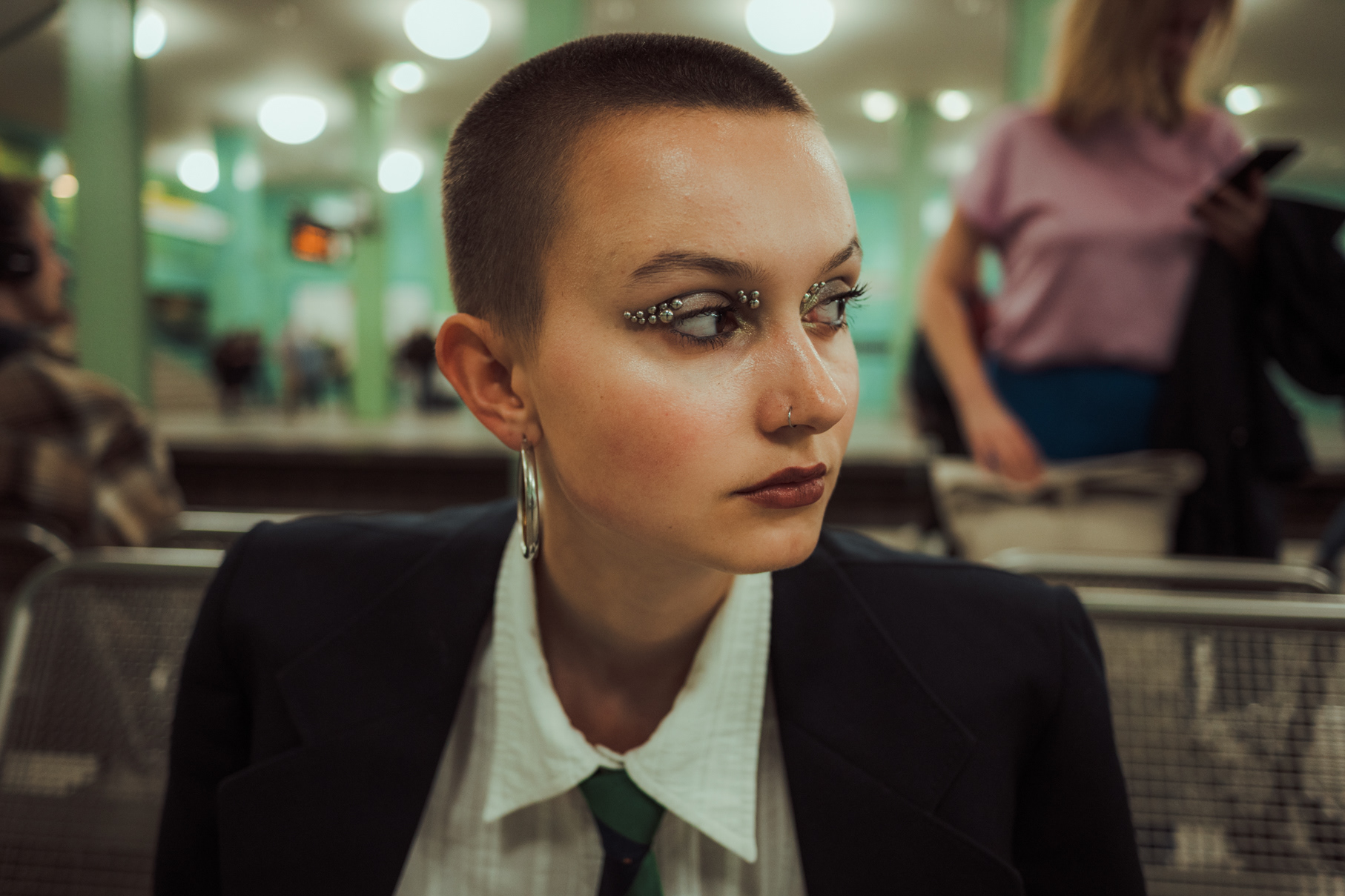 Underground Motion: Cinematic U-Bahn Portraits in Berlin Descending into the heart of the city, this series captures the frenetic energy of the Berlin U-Bahn. Set against the vintage tiles and iconic yellow trains of the underground, these environmental portraits juxtapose stillness with motion. utilizing slow shutter speeds (shutter drag) to blur the passing trains, I aimed to create a visual metaphor for the fast-paced urban life of Berlin, while the subject remains a sharp, stoic focal point. The styling—featuring sharp tailoring, a buzz cut, and avant-garde makeup—adds a high-fashion editorial feel to the gritty public setting. This collection is a study in wide-angle composition and available light photography within one of Berlin’s most recognizable transit systems.