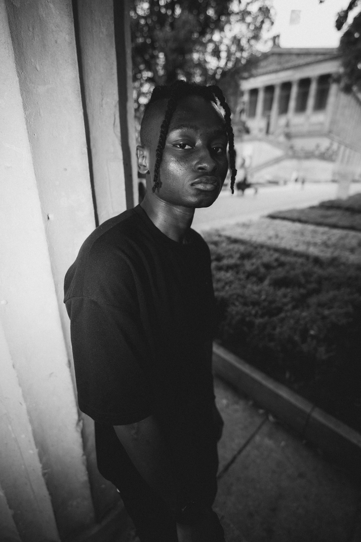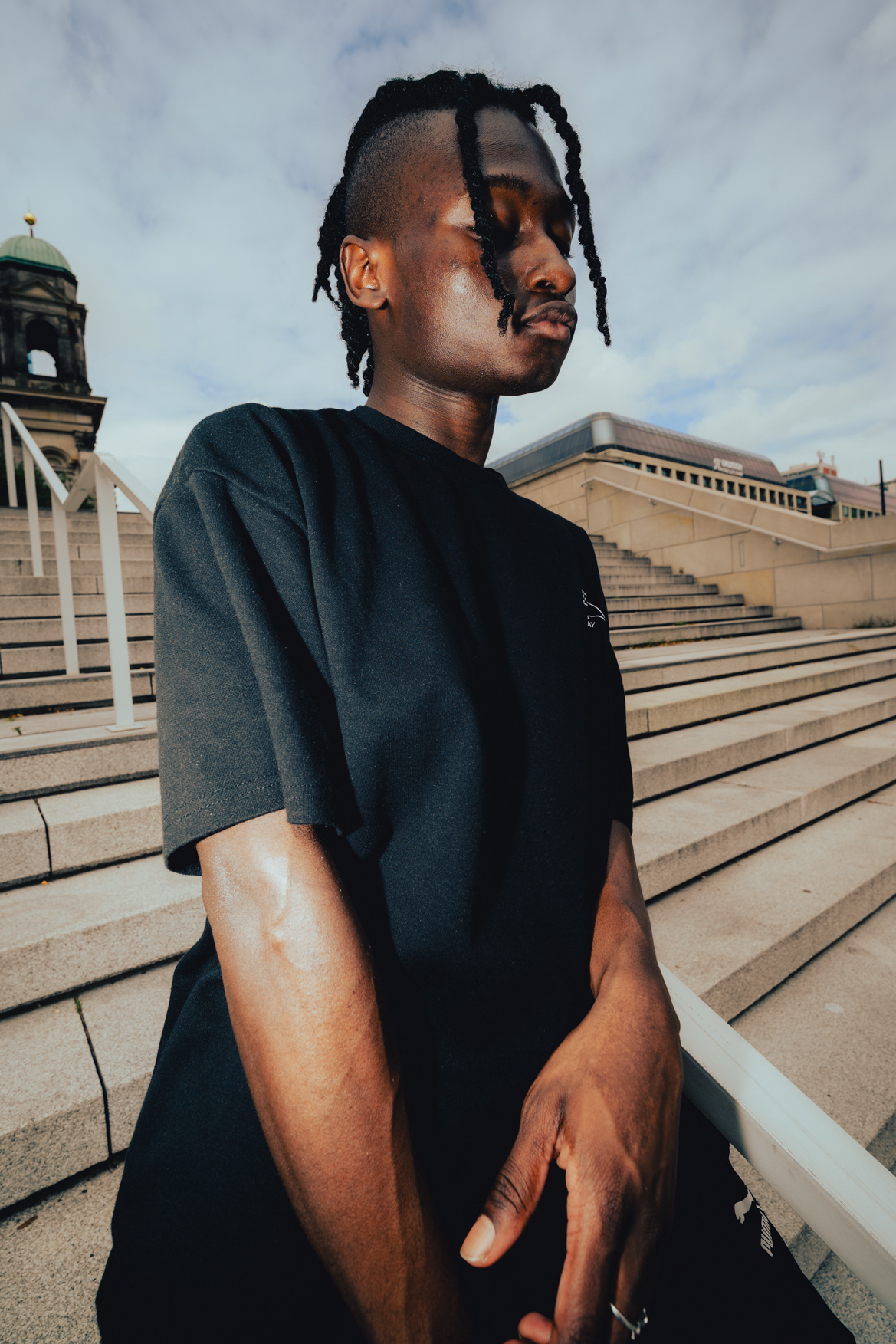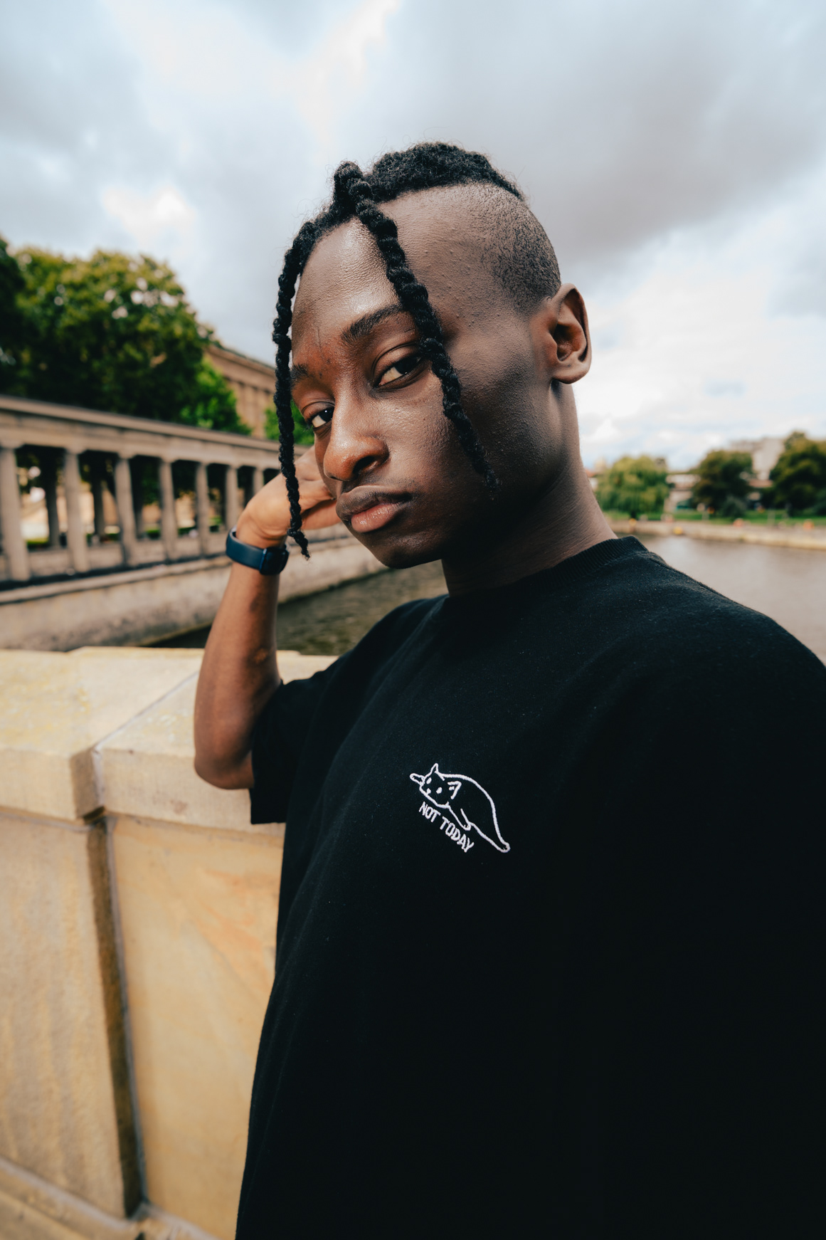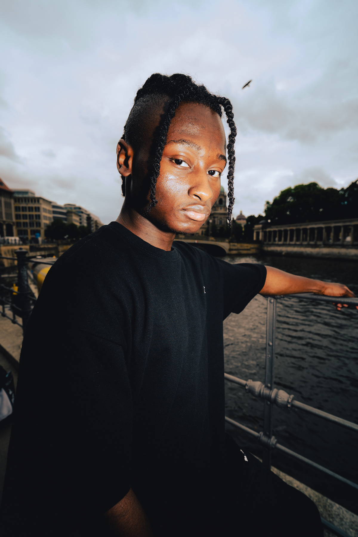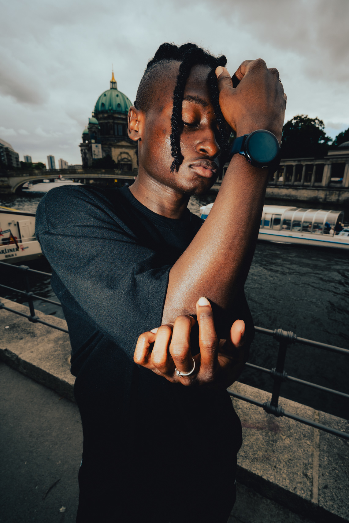 Monumental Style: Streetwear & Architecture on Museum Island This series juxtaposes contemporary streetwear fashion against the monumental backdrop of Berlin’s Museum Island. Shot in the historic center of Mitte, the images explore the relationship between the human figure and grand architecture. Utilizing the striking colonnades of the James-Simon-Galerie and the weathered stone textures of the Alte Nationalgalerie, the session creates a clean, graphic aesthetic. The use of wide-angle perspectives adds a modern edge to the classic surroundings, while the Berliner Dom looms in the moody background. This portfolio showcases a sophisticated approach to urban fashion photography, blending Berlin’s history with modern style.