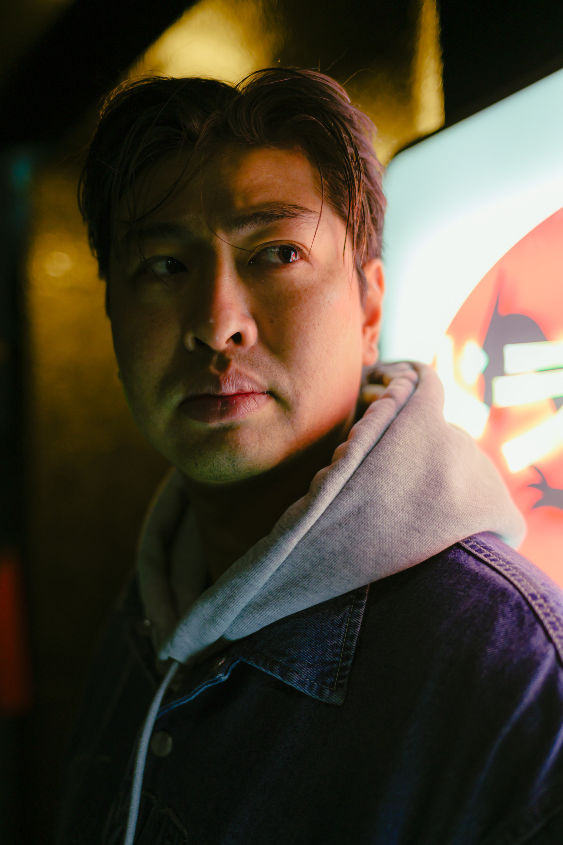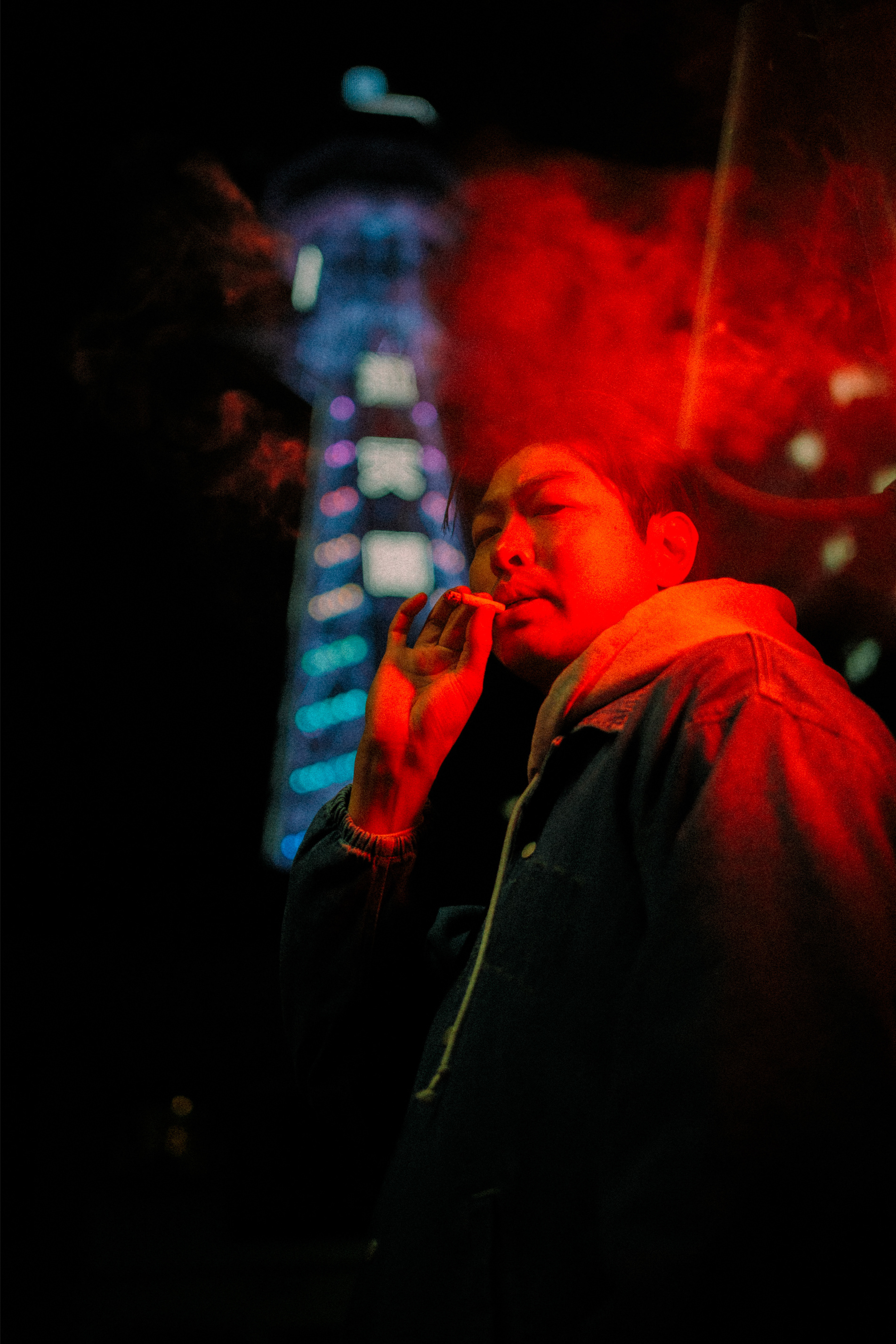 Neon Noir: Cinematic Night Portraits in Shinsekai, Osaka This series dives deep into the atmospheric streets of Osaka, Japan. Shot primarily in the retro-futuristic district of Shinsekai, these images capture the solitude and cool energy of urban nightlife. Utilizing the ambient glow of vending machines, traditional paper lanterns, and the iconic neon of Tsutenkaku Tower, the lighting creates a moody, cinematic palette of deep reds and teals. The portraiture focuses on a "Neo-Noir" aesthetic, blending candid street moments with stylized posing to evoke a sense of mystery and urban isolation in the heart of the Kansai region.