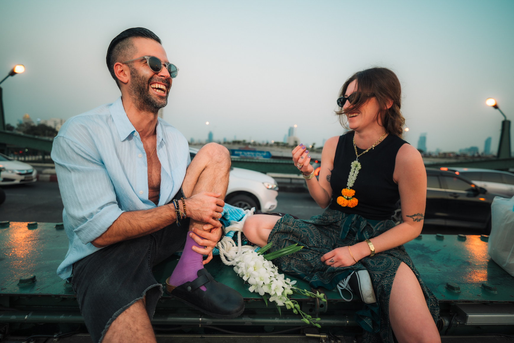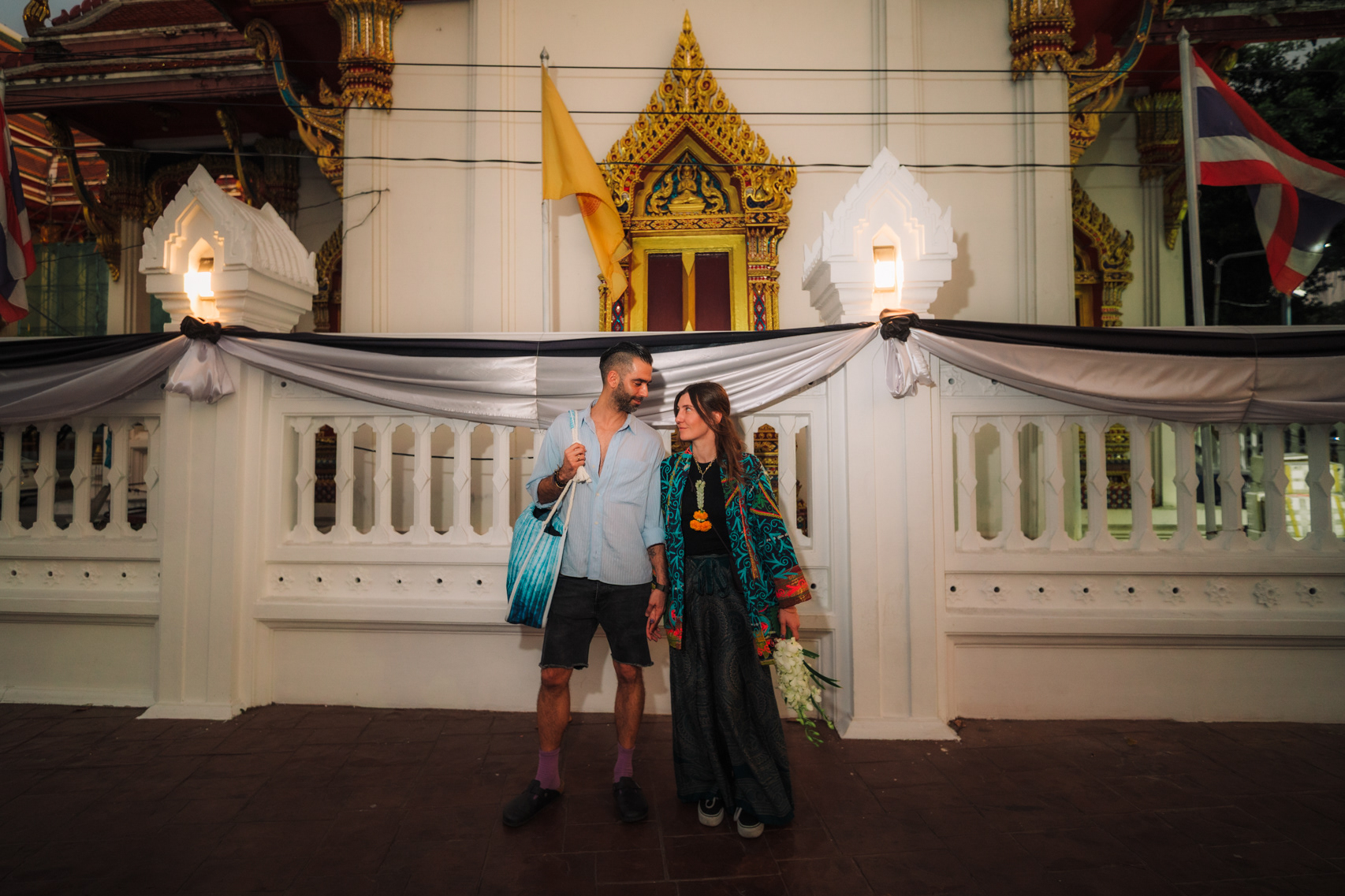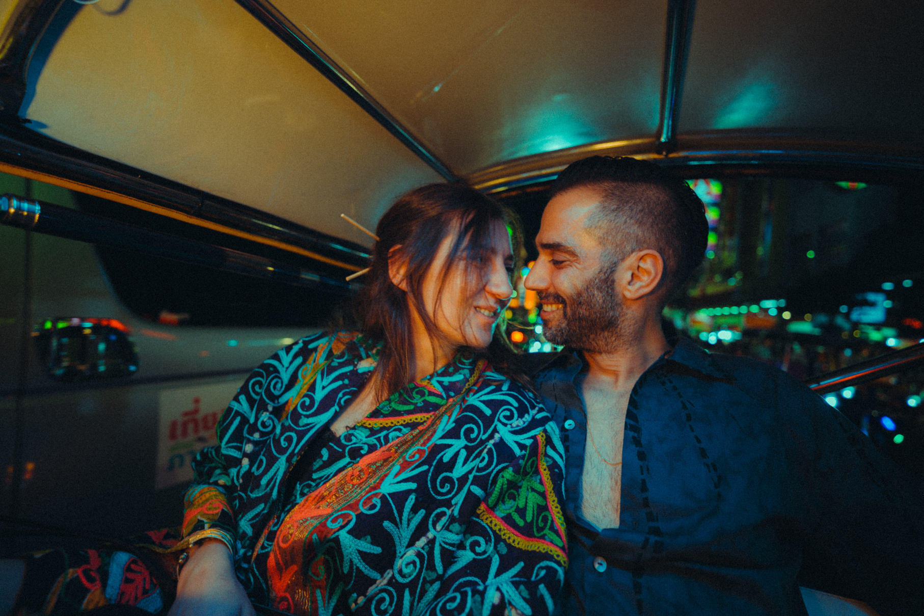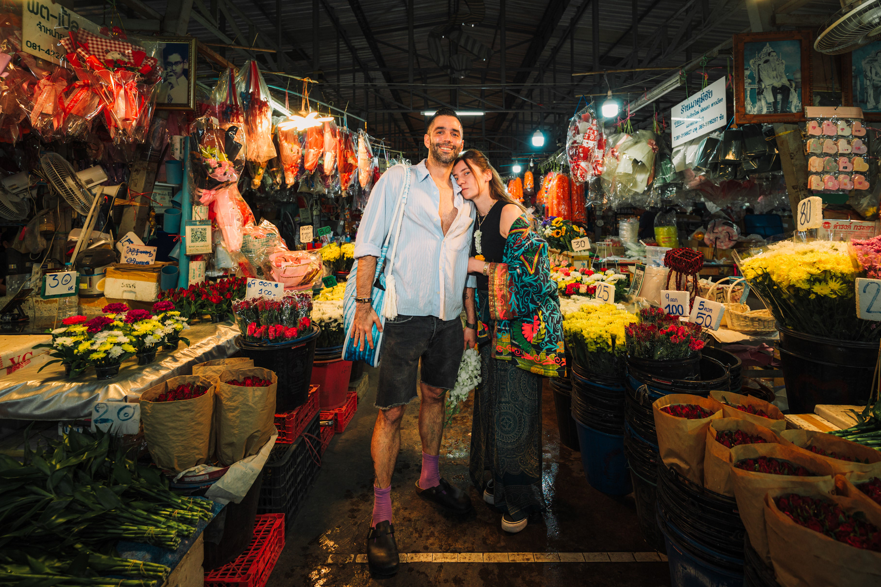 Love in the City: Candid Couple & Honeymoon Photography This series showcases the work of a Bangkok photographer capturing the unscripted joy of travel. Moving away from stiff, traditional poses, the session follows a couple through the vibrant chaos of the city, documenting their genuine connection. Highlights include a high-energy Tuk-Tuk ride at night and colorful moments amidst the marigolds at Pak Khlong Talat (Flower Market). Whether exploring the neon-lit streets of Chinatown or sharing a quiet laugh by the river, this portfolio demonstrates a fun, documentary approach to vacation and honeymoon photography, perfect for couples who want to remember the feeling of their trip, not just the sights.