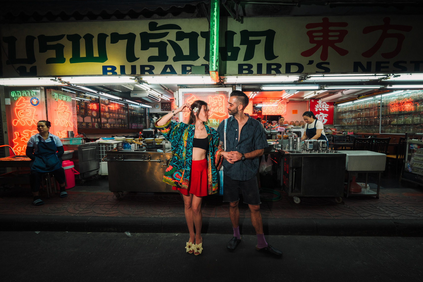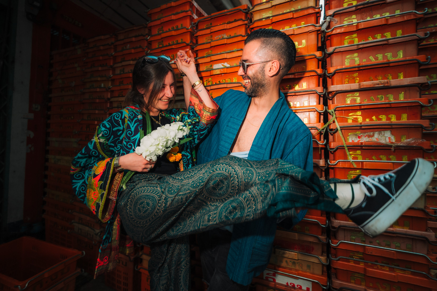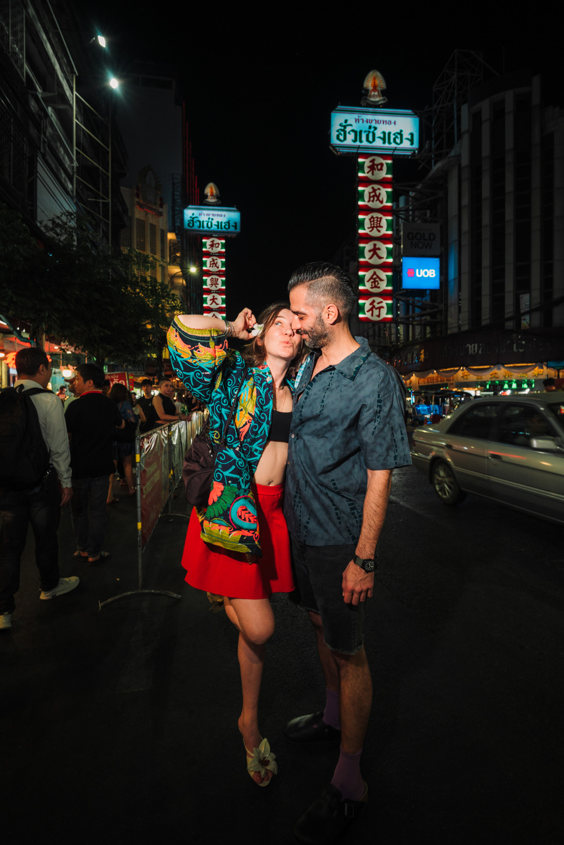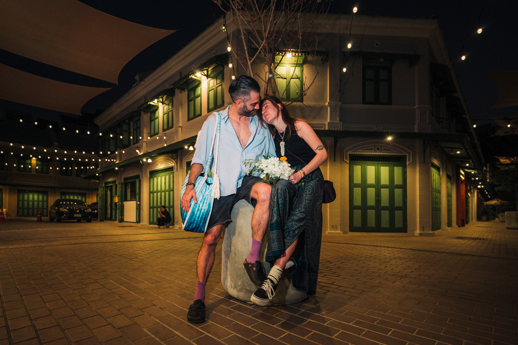 Love in the City: Candid Couple & Honeymoon Photography This series showcases the work of a Bangkok photographer capturing the unscripted joy of travel. Moving away from stiff, traditional poses, the session follows a couple through the vibrant chaos of the city, documenting their genuine connection. Highlights include a high-energy Tuk-Tuk ride at night and colorful moments amidst the marigolds at Pak Khlong Talat (Flower Market). Whether exploring the neon-lit streets of Chinatown or sharing a quiet laugh by the river, this portfolio demonstrates a fun, documentary approach to vacation and honeymoon photography, perfect for couples who want to remember the feeling of their trip, not just the sights.